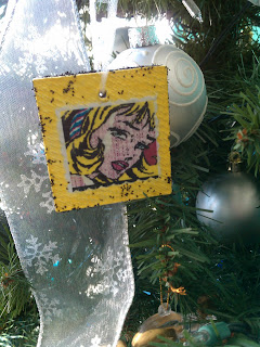 The local artists got together to make unique one of a kind Christmas Ornaments. Local shoppers came through to buy and pick Ornaments from either their favorite artist or one that caught their eye. Hand made little treasures made from wood, glass, and paper, painted with paint and some dusted with glitter. It was a great way for the artist to display their work, talent and imagination. I decided to give people an Art lesson with my Roy Lichtenstein and Miro Ornaments. A bit of art history to hang on a tree.
